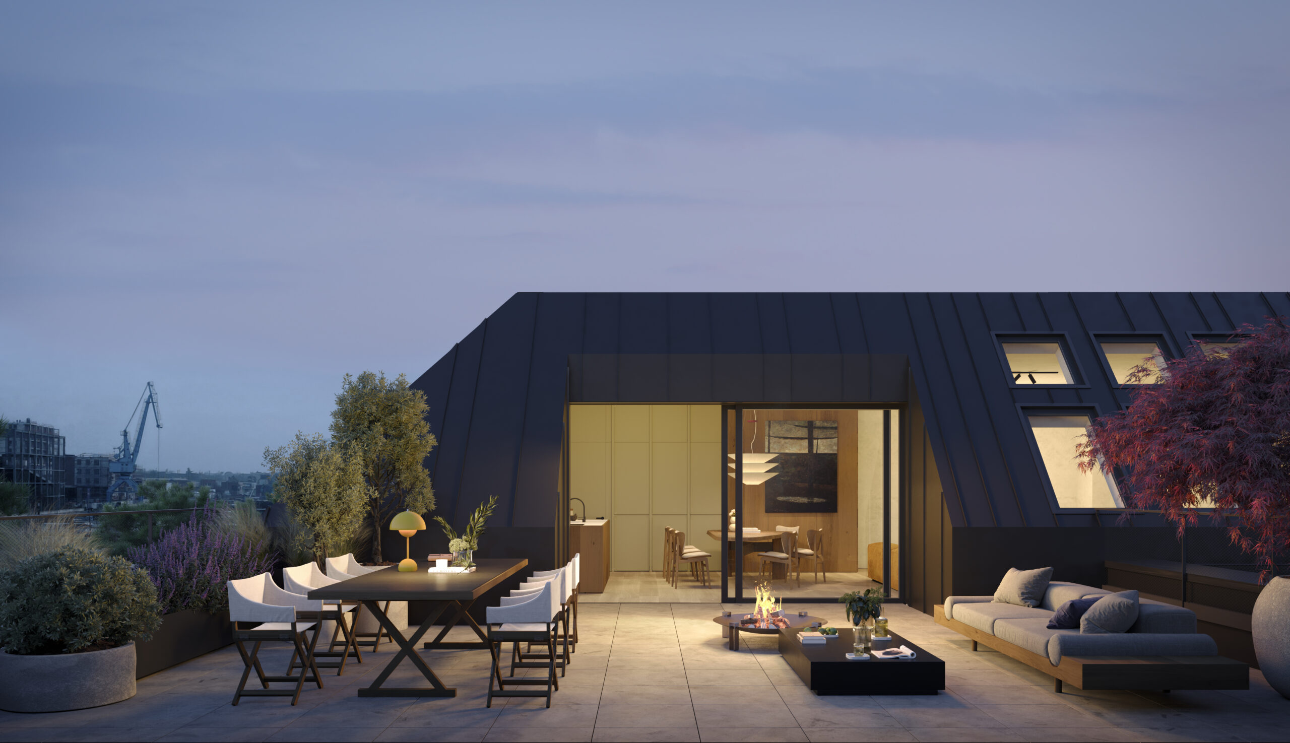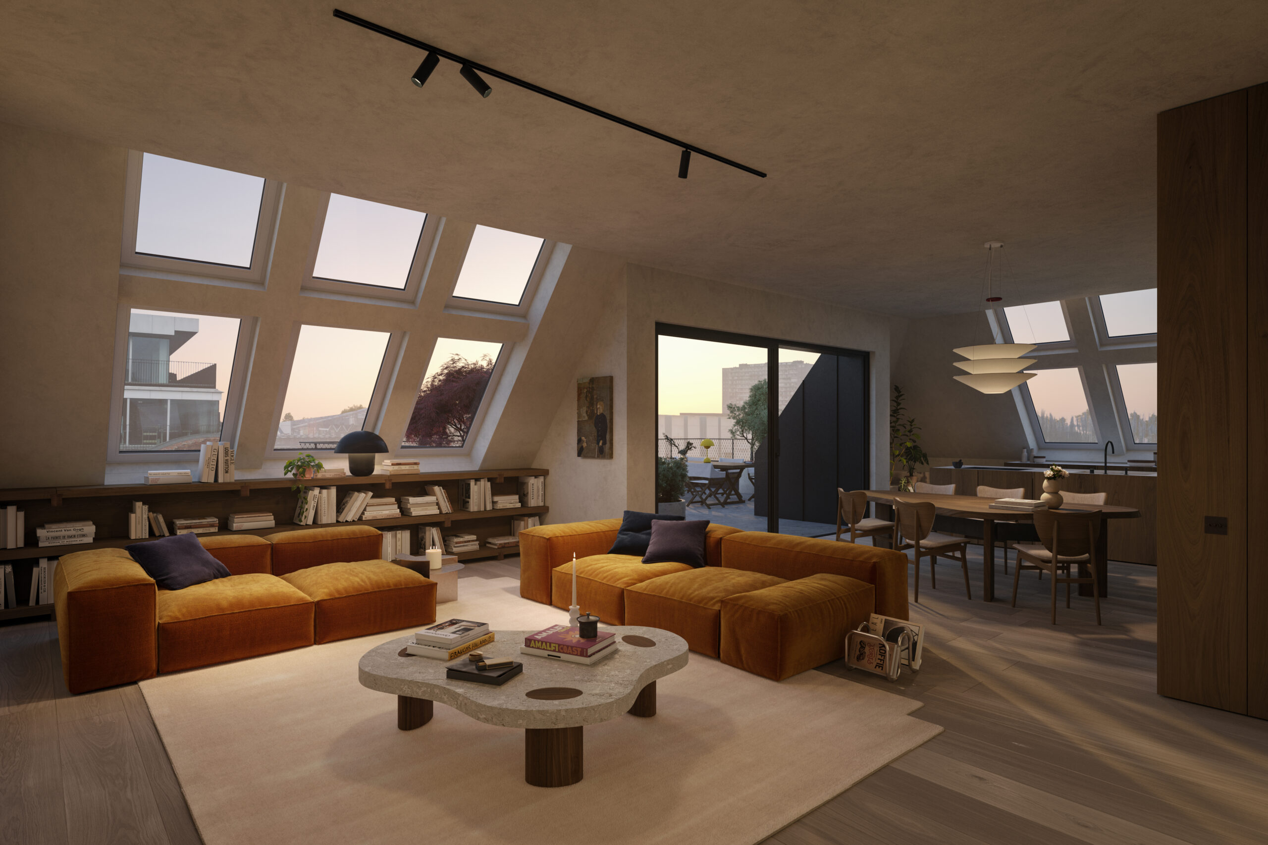 The project comprises 131 homes, ranging from one-bedroom flats to penthouses, as well as seven office spaces spread across two buildings. The complex is surrounded by a 4,000 m² public park accessible to both residents and local residents. The focus is on quality of life, sustainability, soft mobility and conviviality.